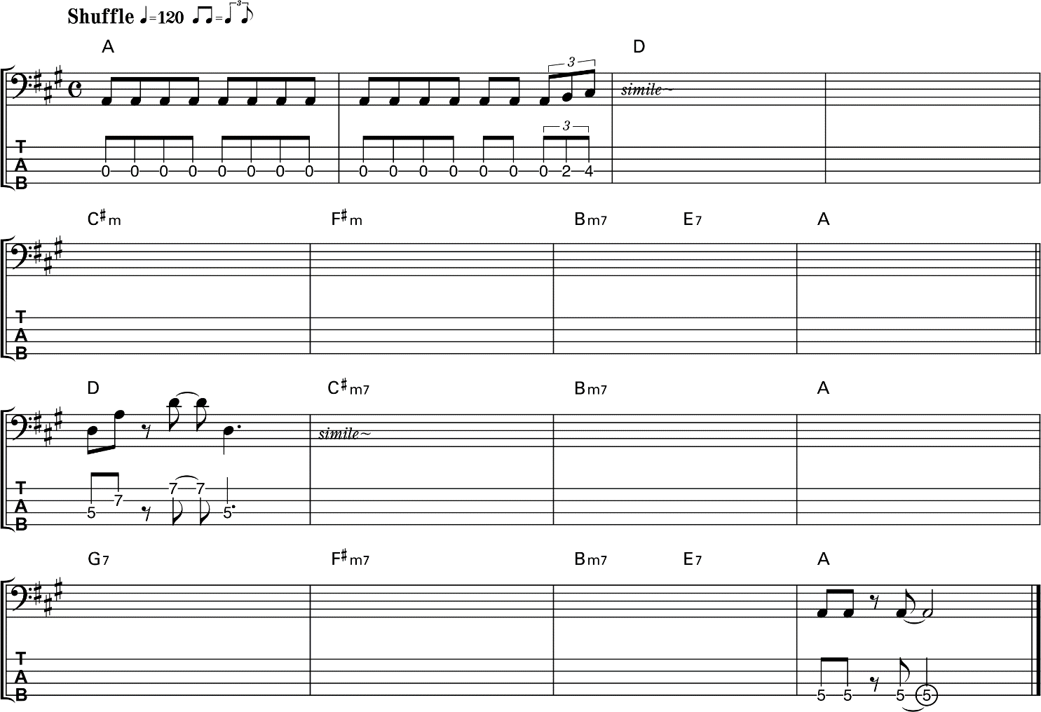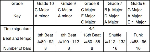- Peserta ujian diharapkan untuk mengulang pola sebanyak yang diperlukan untuk bermain terus menerus dengan musik pengiring.