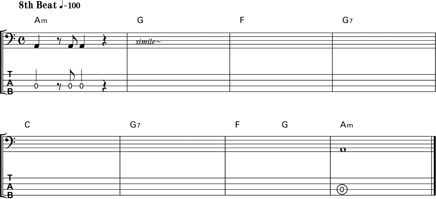 4. Peserta ujian memainkan pola bass dengan rhythm track setelah penguji memberikan aba-aba.