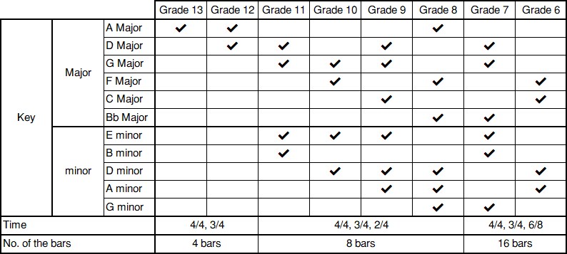 - Untuk Grade 7 dan 6, peserta ujian diharapkan untuk bermain tanpa iringan.