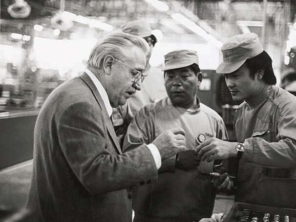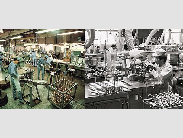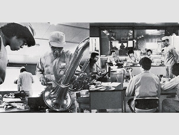 Staf manufaktur Yamaha di pabrik pada tahun 1970-an