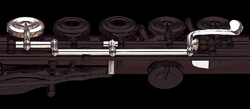 Utilizes the “pinless left-hand key system,” the ideal configuration for handmade flutes. This improves high F-F# key operation, and because there are no pins, maintenance is easier.