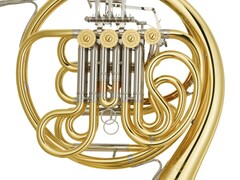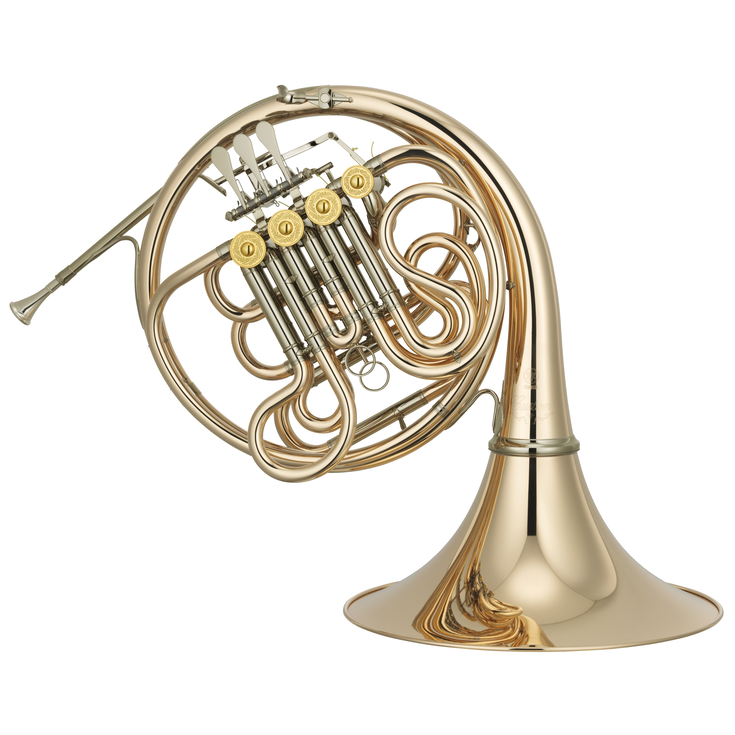 Custom Series Full Double Horn, Key: F/Bb, Valves: 4 rotary valves, Bell size: M, Bell type: Detachable, Bore: 12.1mm (0.476"), Valve casings: Nickel silver, Valve Rotors: Solid (1st, 2nd, and 3rd) Hollow (4th), Lever action: String