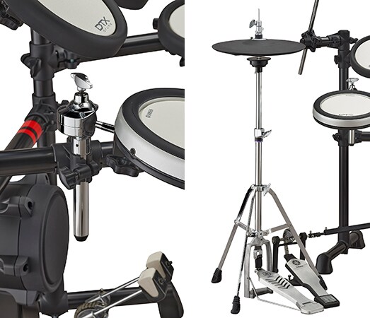 Stand hi-hat HS650A dari Yamaha disertakan bersama DTX6K2-X dan DTX6K3-X. Semua DTX6 Series juga menggunakan traditional ball clamp Yamaha untuk snare pad yang akan memudahkan dalam menyesuaikan pengaturan.