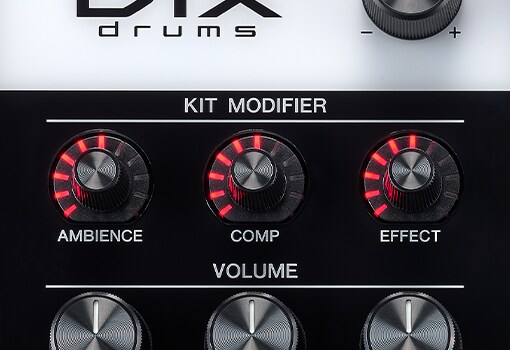 Agar para drummer dapat menikmati pengaturan suara kit, Yamaha telah mencurahkan semua pengetahuan yang diperoleh dari pengalaman selama bertahun-tahun ke dalam KIT MODIFIER, yang terdiri atas tiga kenop - AMBIENCE, COMP, dan EFFECT.
