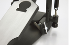 Loosening the adjustment screw lets you freely adjust the beater angle along with the footboard angle.