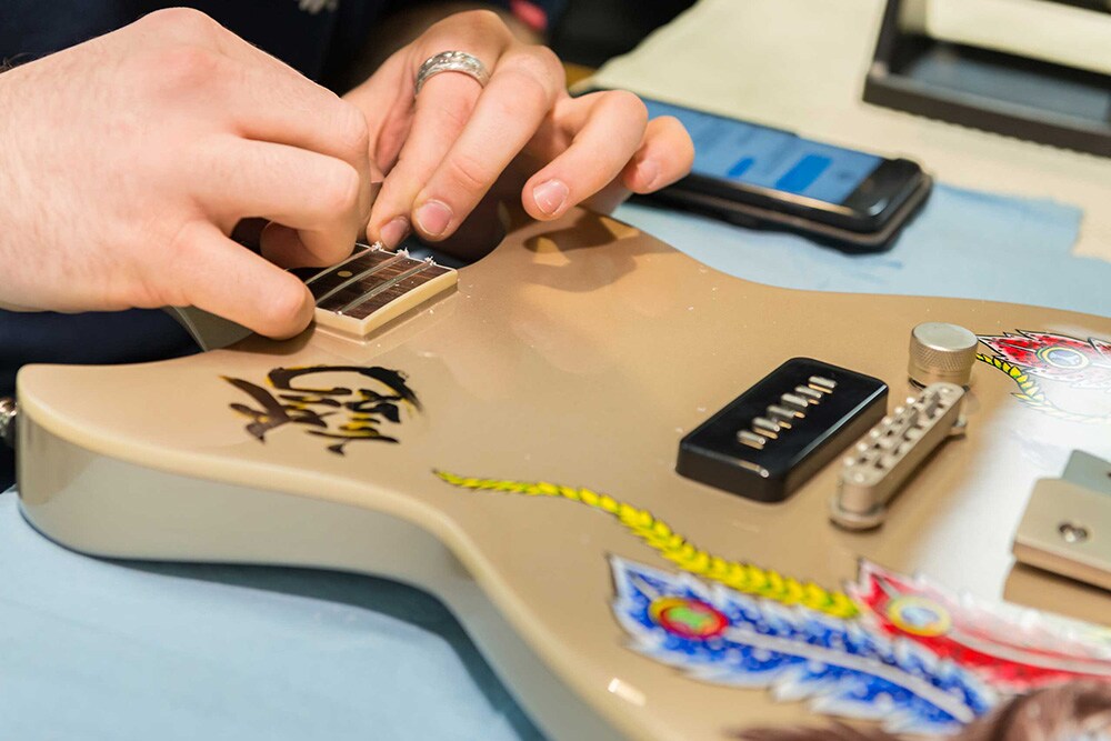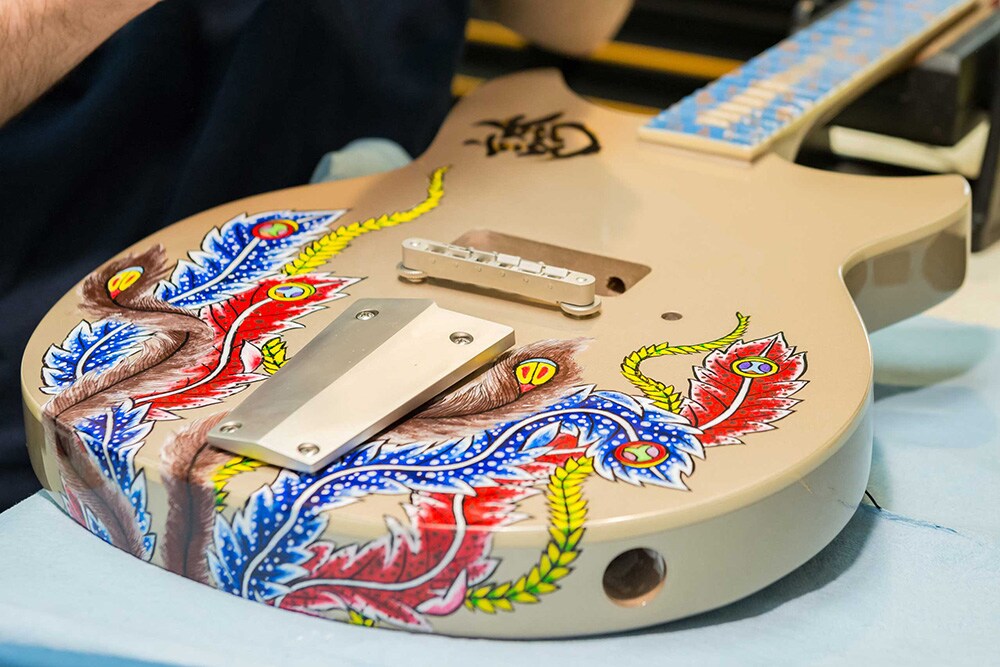 “Saat saya mengunjungi toko kustom Yamaha, saya merasakan mentalitas pengrajin ini di dunia yang sama sekali berbeda,” lanjut Hiro. “Saya tahu saya bisa mempelajari sesuatu dari betapa bersemangatnya Yamaha membuat gitar. Mengingat ada rasa saling menghormati di antara kami, saya berkata ‘Baiklah! Ayo kita lakukan sesuatu bersama-sama!”