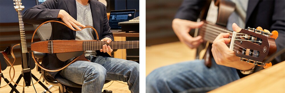 Ya. Tanpa adanya bodi, resonansi dan reverb yang biasanya berasal dari gitar ke udara sekitar akan hilang, begitu pula kualitas suara live. Kami ingin merepresentasikan reverb yang dalam dari bodi gitar sambil tetap mempertahankan karakteristik senyap ini, yang mendorong kami menciptakan sistem Powered pickup system SRT (Studio Response Technology) Yamaha yang unik.