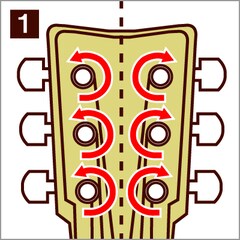 Sebelum memasang senar baru sebuah gitar, pertama-tama pastikan arah untuk memutar peg (pin penahan senar). Peg untuk senar 1 sampai 3 biasanya diputar searah jarum jam saat melihat dari depan, sedangkan untuk senar 4 sampai 6 diputar berlawanan arah jarum jam.