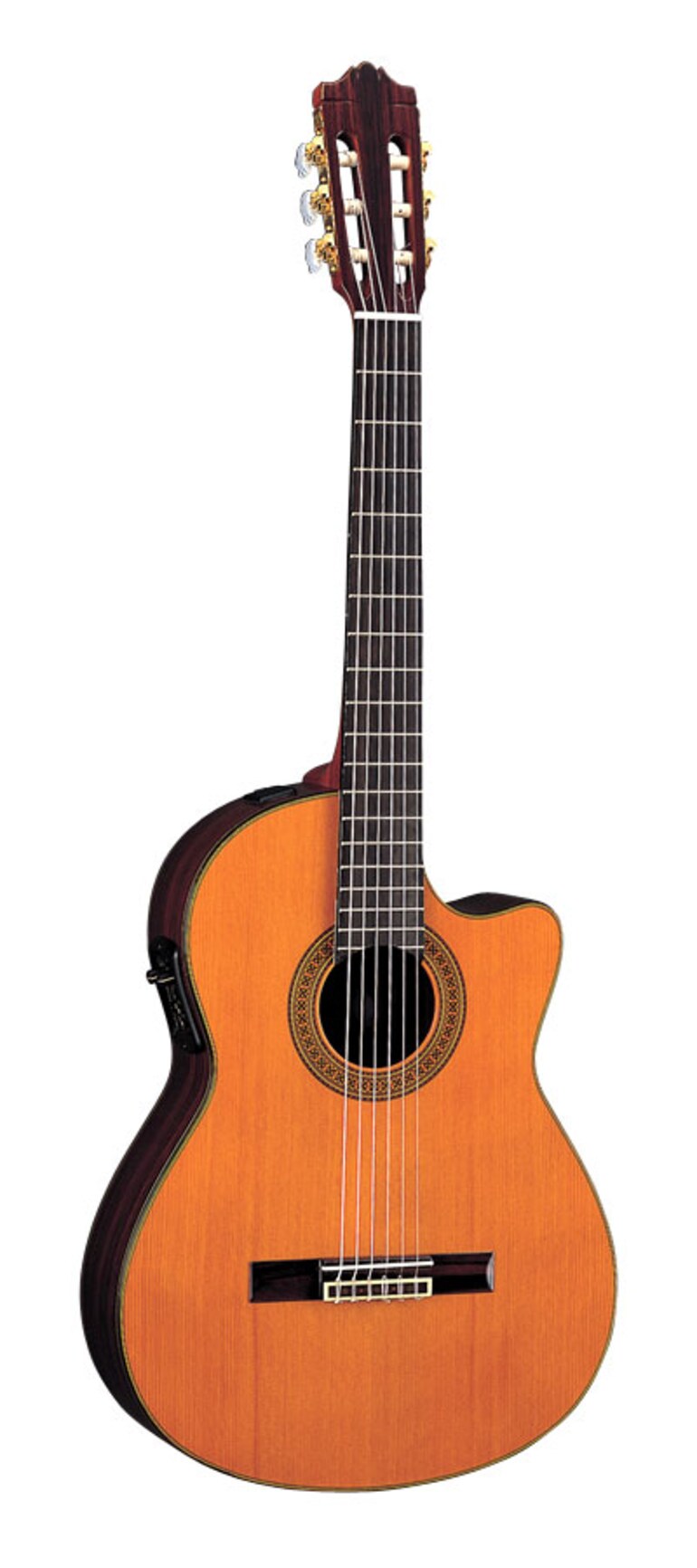 An electric version of the CG171, the CGX171CCA features a solid cedar top with rosewood back and sides. It features our 2-way System 49 pickup system combining a piezo pickup and condenser microphone for optimum amplified tone, and a cutaway design for greater access to the upper frets.