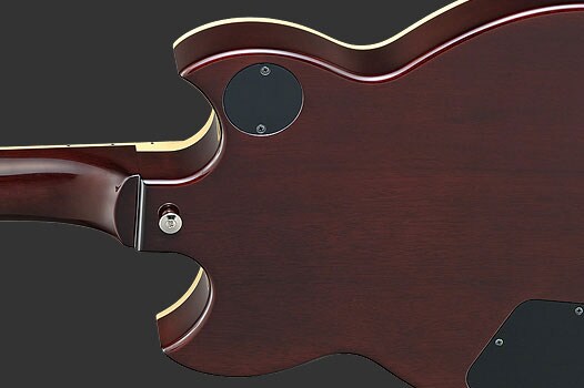 While preserving the basic structure of Maple Top/Mahogany Back and SG’s iconic double cutaway design, the body of SG1820 was redesigned to capture the sound and look which today’s guitarists want. The contoured body top curves more deeply than previous models - the top arc of the curve, the center part of the body, has optimized wood-mass to maximise string-body vibration from the from the bridge and tailpiece. The deep curve maintains the guitar’s optimum weight balance and enhances the SG’s stunning shape. The back contour featured on SG1/2/3000, designed for increased comfort when the guitar was played high on the strap, has been modified to a flat back on the new SGs. The new flat back design increases the volume of Mahogany to significantly increase the low-mid response and presence while reflecting ergonomics needed for the lower stance modern players take with SGs.