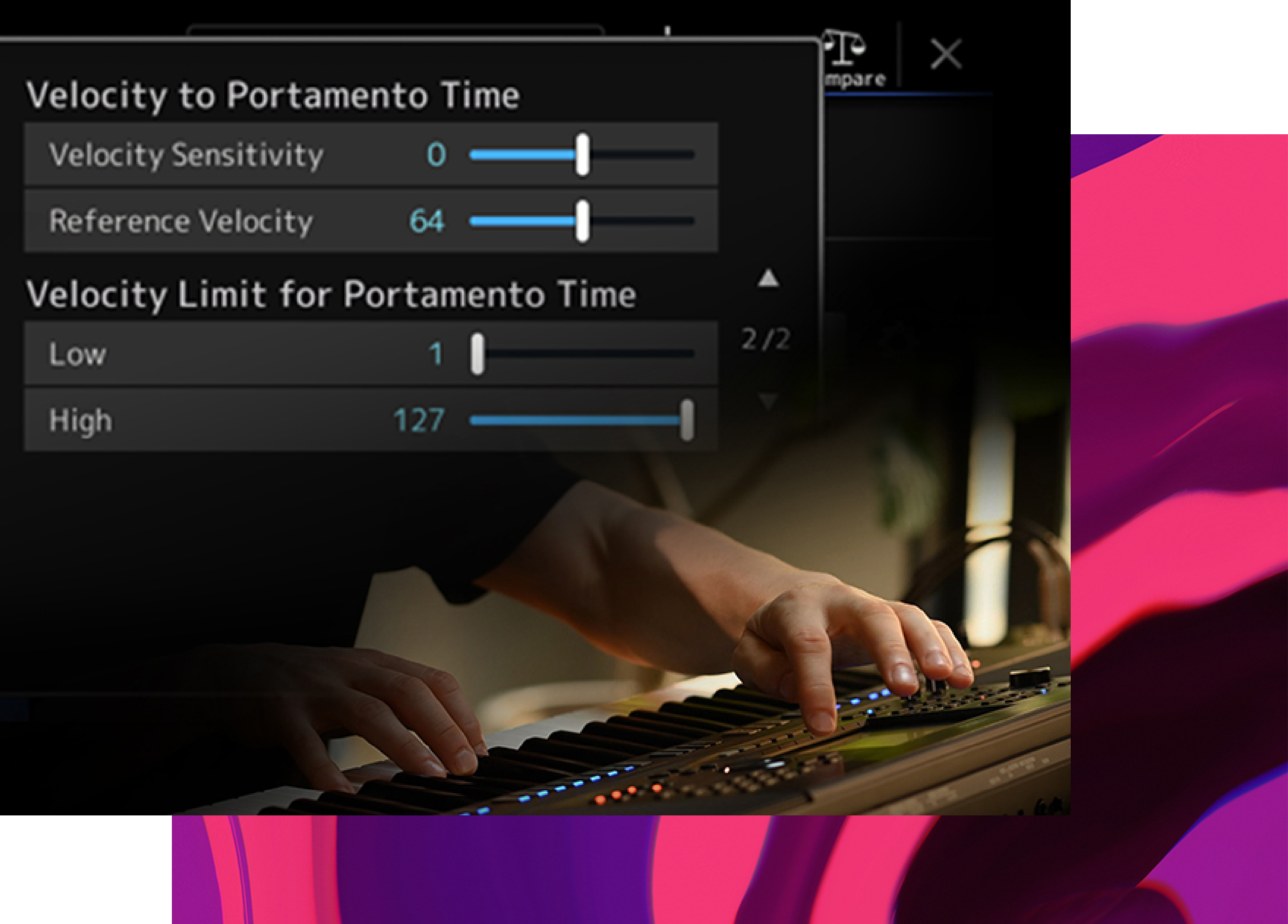 batas kecepatan untuk portamento kini dapat diatur secara independen, sehingga memberikan fleksibilitas lebih besar bagi mereka yang ingin menggunakan portamento.