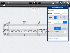 Playback control including keyboard/backing part / metronome on/off, and tempo control
