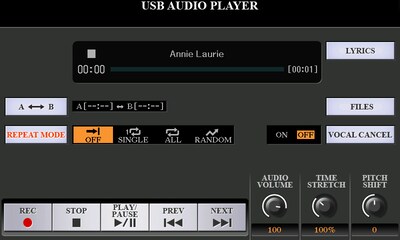 • USB audio playback dengan fungsi time stretch, pitch shift, vocal cancel, dan fungsi tampilan lirik MP3