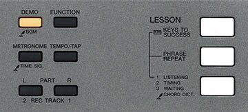 The lesson function offers a total of nine stages—three for the left hand, three for the right, and three for both hands, helping beginning players to practice the songs stored in the instrument. There's a scoring function that makes it fun to practice and improve, and a "Waiting" function that adjusts the tempo to suit the person playing, pausing the accompaniment until the correct note is played.