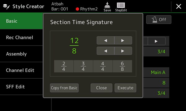 - Style Section Time Signature, Style Section Reset