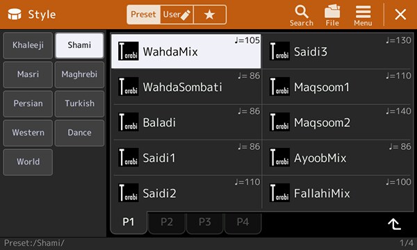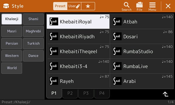 - 454 Style (termasuk 260 Style Oriental, Khaleeji, Shami, Masri, Maghrebi, Persia, dan Turki)