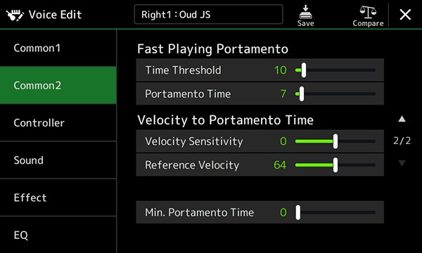 - Crossfade Portamento dengan parameter terkait velocity dan waktu