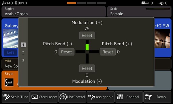 - Tombol Pengaturan Scale Tune, tombol Memori Scale Tune