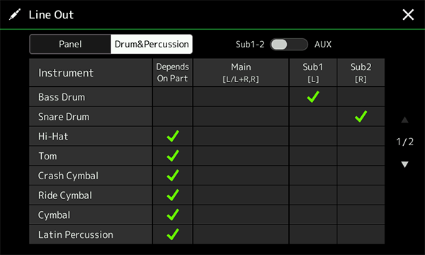 - Kenop Live Control, joystick Live Control, Tombol Assignable, Layar sentuh berwarna 7-inci, Keyboard FSB, Sub output