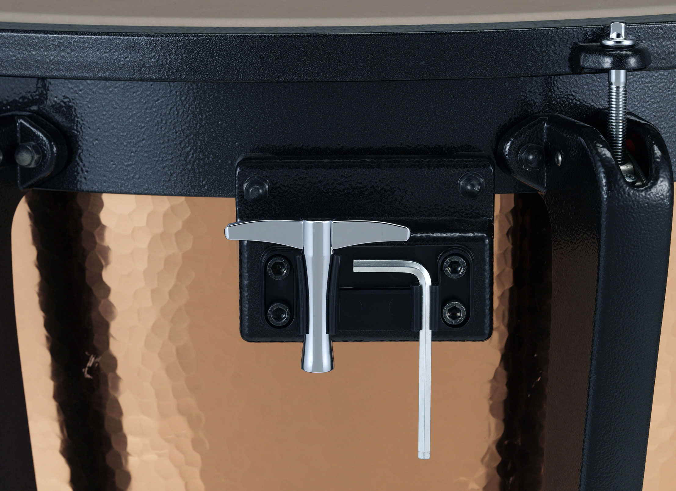 The hammered bowls in this series feature a squarer “cambered” profile than conventional bowl designs. The most obvious benefits are ample volume, ideal timpani decay, and significantly improved mallet response. The most desirable qualities of copper are emphasized, with carefully thought out and proven refinements to bowl size, bearing edge shape (the edge that contacts the timpani head), the diameter of the aperture in the bottom of the bowl, and more. The overall result is rich, deep tone with superior playability.