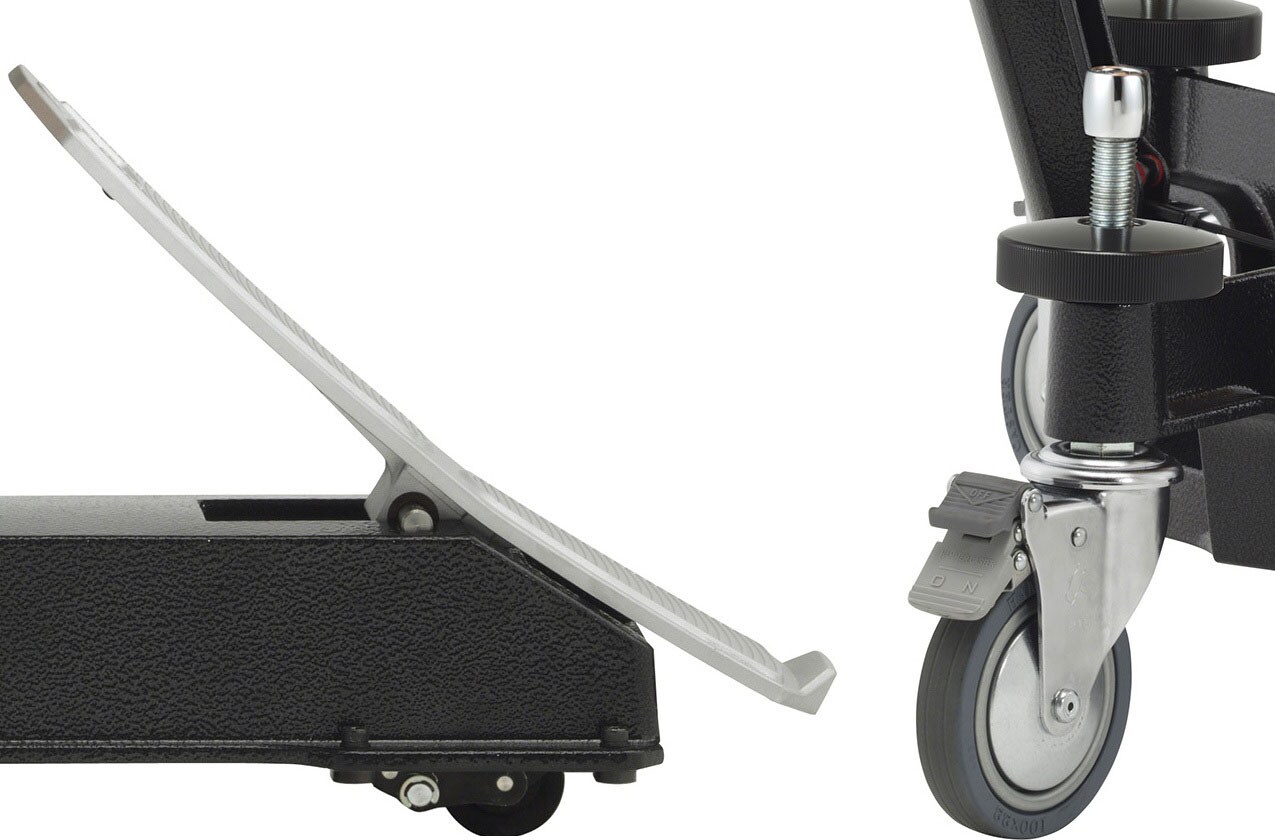 Large main casters are supplemented by a third caster below the pedal, allowing the instruments to glide smoothly and easily.