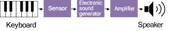 Sensor bisa mendeteksi gerakan tuts yang paling halus, suara yang direkam secara digital dari grand piano dapat diperbesar dan dihasilkan dari pengeras suara (speakers). Dapat menggunakan efek akustik, termasuk suara kumandang (reverb) dan sensasi penampilan akustik di ruangan yang besar, menggunakan teknologi digital.