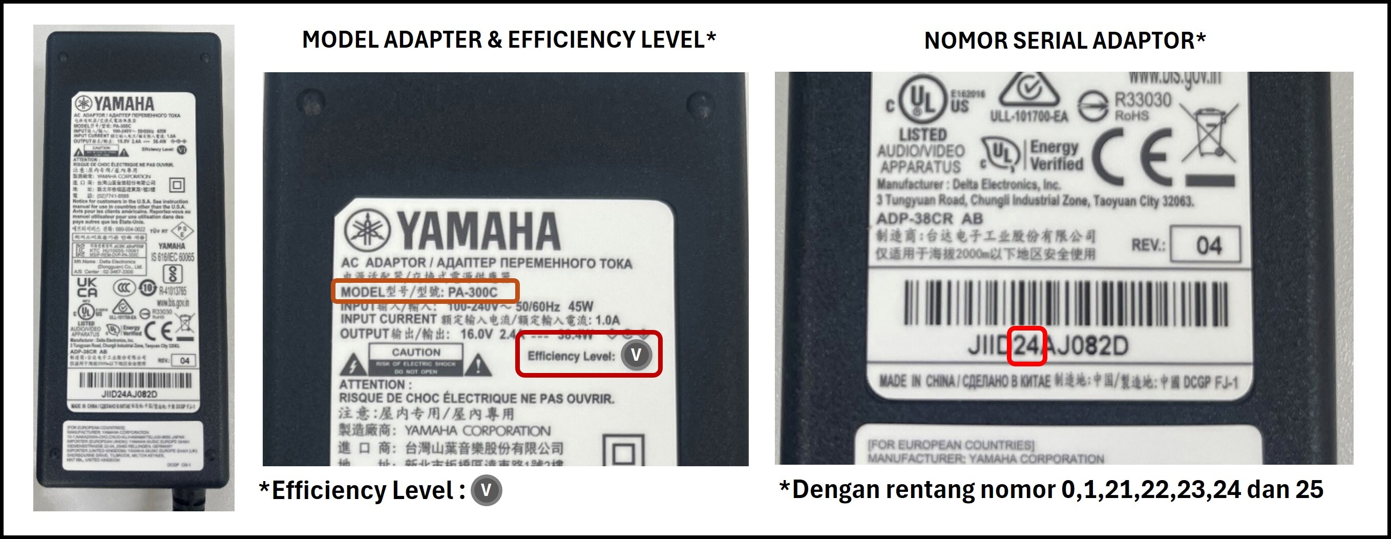 Catatan : Nomor seri adapter terdapat di bagian belakang AC adapter Yamaha PA-300C (lihat foto)