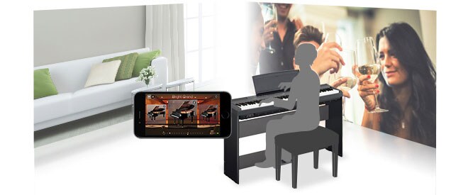“Digital Piano Controller” digunakan untuk mengendalikan berbagai fungsi yang ada pada piano dengan iPhone atau iPad Anda, untuk pengoperasian yang lebih mudah.