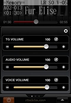 Use the intuitive touches, flicks, and other gestures only possible with a smartphone to change any of the parameters on your Disklavier. You can even use the time bar to quickly navigate to the part of the song that you want to listen to.