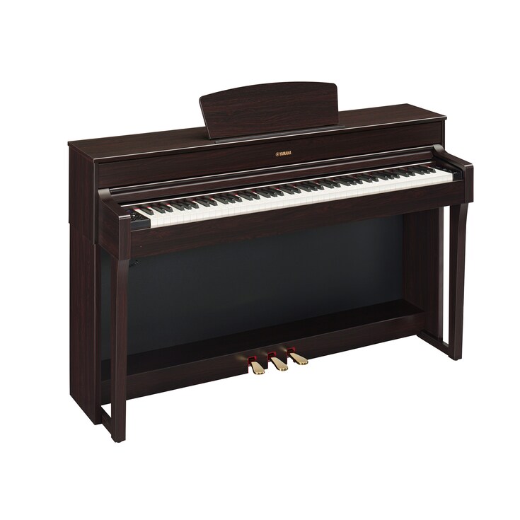 Digital piano featuring GH3 keyboard and Yamaha CFX concert grand piano sample with powerful speakers and control display.