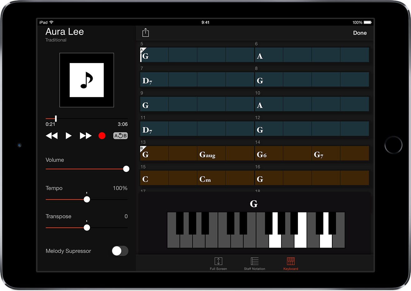 Dengan menggunakan aplikasi Yamaha yang menarik ini, perangkat iOS Anda akan merekam secara virtual lagu apapun* dan memberi tahu Anda akor yang diperlukan pada saat memainkan lagu tersebut. Masukkan file lagu ke dalam CVP di mana lampu pemandu dapat menunjukkan kepada Anda cara memainkan akor-akor tersebut, dan juga instruksikan musik band latar virtual Anda untuk bermain bersama dengan menggunakan Style. Aplikasi Chord Tracker yang eksklusif dari Yamaha dioptimalkan untuk bekerja dengan Clavinova CVP untuk kemungkinan bermain musik otodidak tanpa batas.