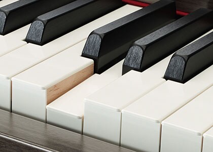 Jari-jari kita lebih sensitif dari yang kita kira, dan bagi pianis, tekstur tuts piano sangat penting. Keyboard GrandTouch dilengkapi tuts berwarna putih yang dibuat dari gading sintetis berkualitas tinggi, yang dikembangkan secara independen oleh Yamaha. Tuts hitamnya dihiasi dengan eboni sintetis. Bagian atas tuts berbahan gading sintetis mereproduksi permukaan sentuhan keyboard berbahan gading asli yang pernah digunakan pada piano akustik jaman dahulu. Bagian ini memiliki bahan yang sangat menyerap, yang mencegah tergelincirnya jari meskipun setelah latihan selama berjam-jam, di samping mempertahankan tekstur dan feel yang ideal. Teknologi eksklusif Yamaha yang merupakan hasil dari pengalaman lebih dari satu abad dalam membuat piano akustik ini mencapai hasil akhir yang terasa alami dan nyaman. Selain dari itu tampilan dan tekstur halus tuts ini tidak tertandingi oleh piano digital lainnya, dan pastinya akan menginspirasi pianis sejak kali pertama mereka merasakannya.