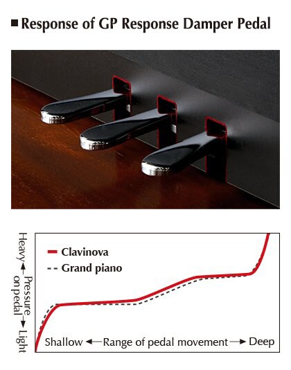 Model high-end memiliki GP Response Damper Pedal, yang menawarkan kurva resistansi seperti layaknya grand piano, yang memunculkan cahaya saat disentuh dan semakin terang saat pedal semakin ditekan. Hal ini memungkinkan pemain untuk terbiasa dengan cara penekanan pedal yang halus.