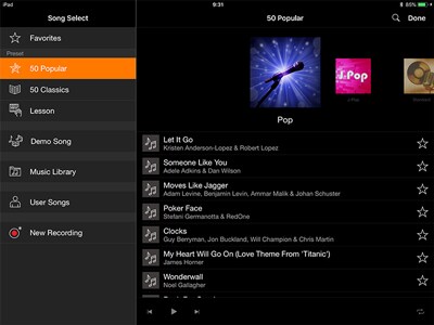 Smart Pianist dapat memutar ulang lagu yang sudah ada ataupun yang tersedia secara komersial, dan memungkinkan Anda untuk hanya mendengarkannya atau memainkannya. Aplikasi ini juga menampilkan notasi untuk ratusan lagu MIDI internal, dan bahkan Anda dapat menikmati lagu tambahan yang dibeli dari Yamaha MusicSoft.