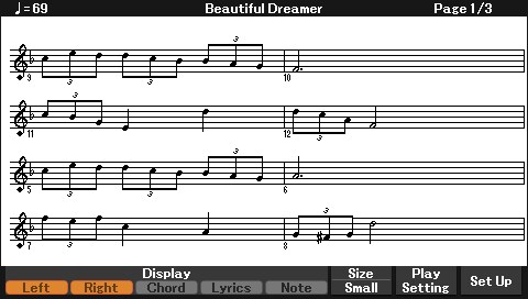 Fitur Pembelajaran merupakan cara yang menyenangkan untuk belajar dan menguasai Lagu, dengan notasi ditampilkan di layar. Misalnya, saat Anda melatih bagian tangan kanan, pemutaran bagian kiri dan bagian lain akan menunggu Anda memainkan not dengan benar. Fungsi ini memungkinkan Anda untuk berlatih melodi dan frasa dengan lancar—meskipun Anda seorang pemula.