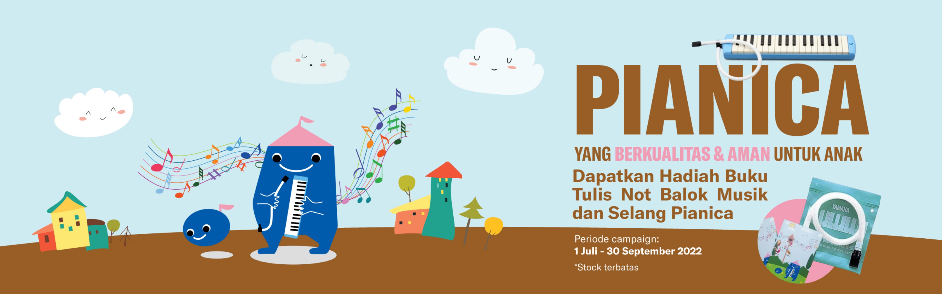 Bermain Pianica adalah cara yang menyenangkan bagi anak untuk mengawali perjalanan bermain musik mereka. Dapatkan hadiah istimewa berupa Buku Tulis Not Balok Musik Piadon dan ekstra Selang Pianica khusus untuk pembelian Yamaha Pianica P-32D dari 1 Juli 2022 - 30 September 2022!