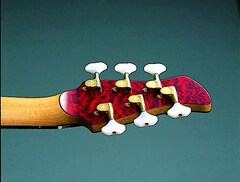 White perloid peg heads aid in balancing the super long scale neck while adding great looks.