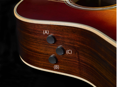 Kotak baterai terintegrasi pada end-pin jack. Hal ini membuat lebih sedikit lubang di bodi, yang mengurangi “acoustic loss”. Hubungkan kabel dari end-pin jack ke mixer atau amplifier untuk bermain di panggung.
